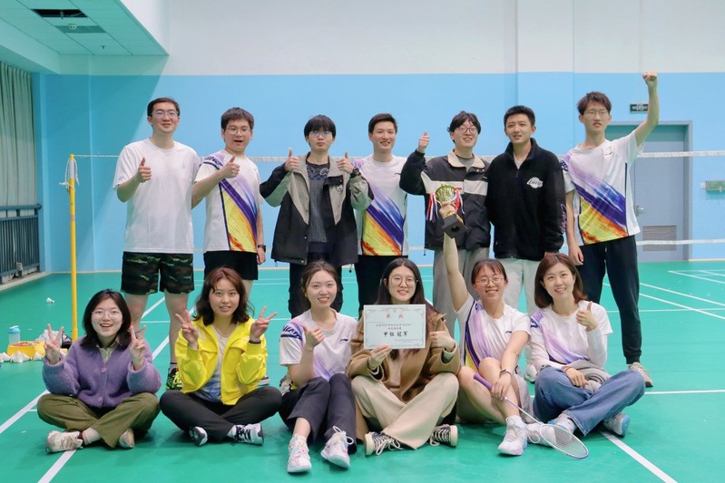在2022-23年度羽毛球院系杯我们在打下一连串的硬仗获得了冠军,四强队伍的材料,商院都与我们交过手。其中材料队在小组赛时曾经打败过我们,但是我们在经过一系列特训和战术安排后在四强赛时以4:1战胜了他们,在决赛对战商院时,我们一度落后两个大比分,但男双和混双我们以大优势拿下两分,并成功打回士气。在决胜局女双时战况非常焦灼,比分咬的非常紧,第一场我们以22:20加时获胜,在第二场更是26:24加时获胜。最终“让二追三”夺得冠军。