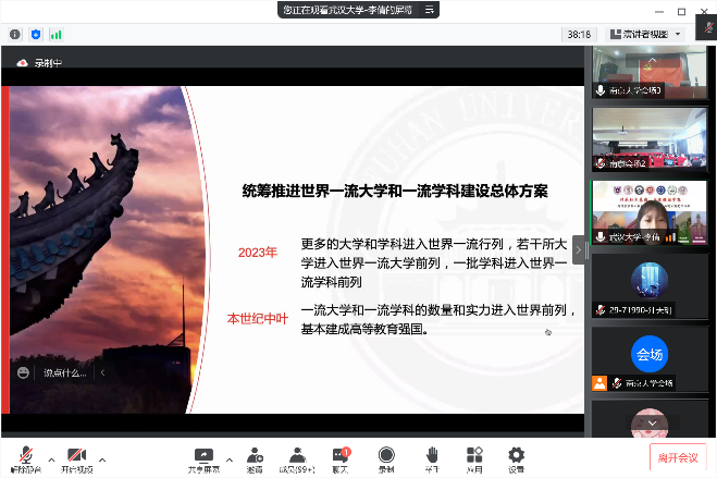 武汉大学李倩同学带来了《扎根中国大地,建设中国特色世界一流的大学和专业》的主题分享,阐述了她对中国特色和世界一流两个方面具体内涵的理解,以及对统筹推进世界一流大学和一流学科建设总体方案的认识。