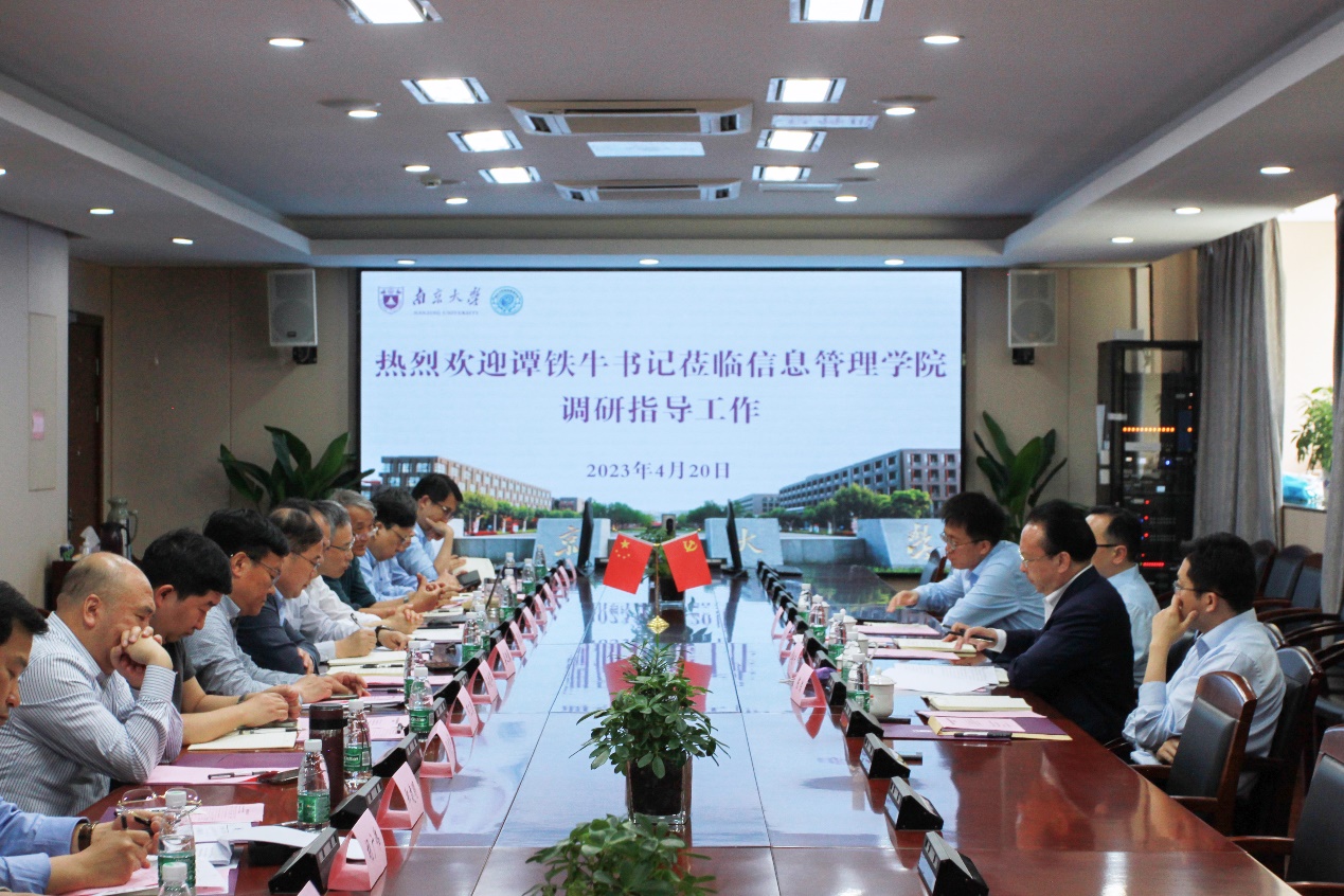 420日,全国政协常委、中科院院士、校党委书记谭铁牛赴肉番 调研,就学院与学科的发展状况及"奋进行动"实施情况与学院党政班子成员、与会教师代表进行了座谈交流。社科处处长陈冬华,党委办公室副主任陈浩等陪同调研。