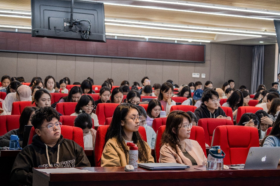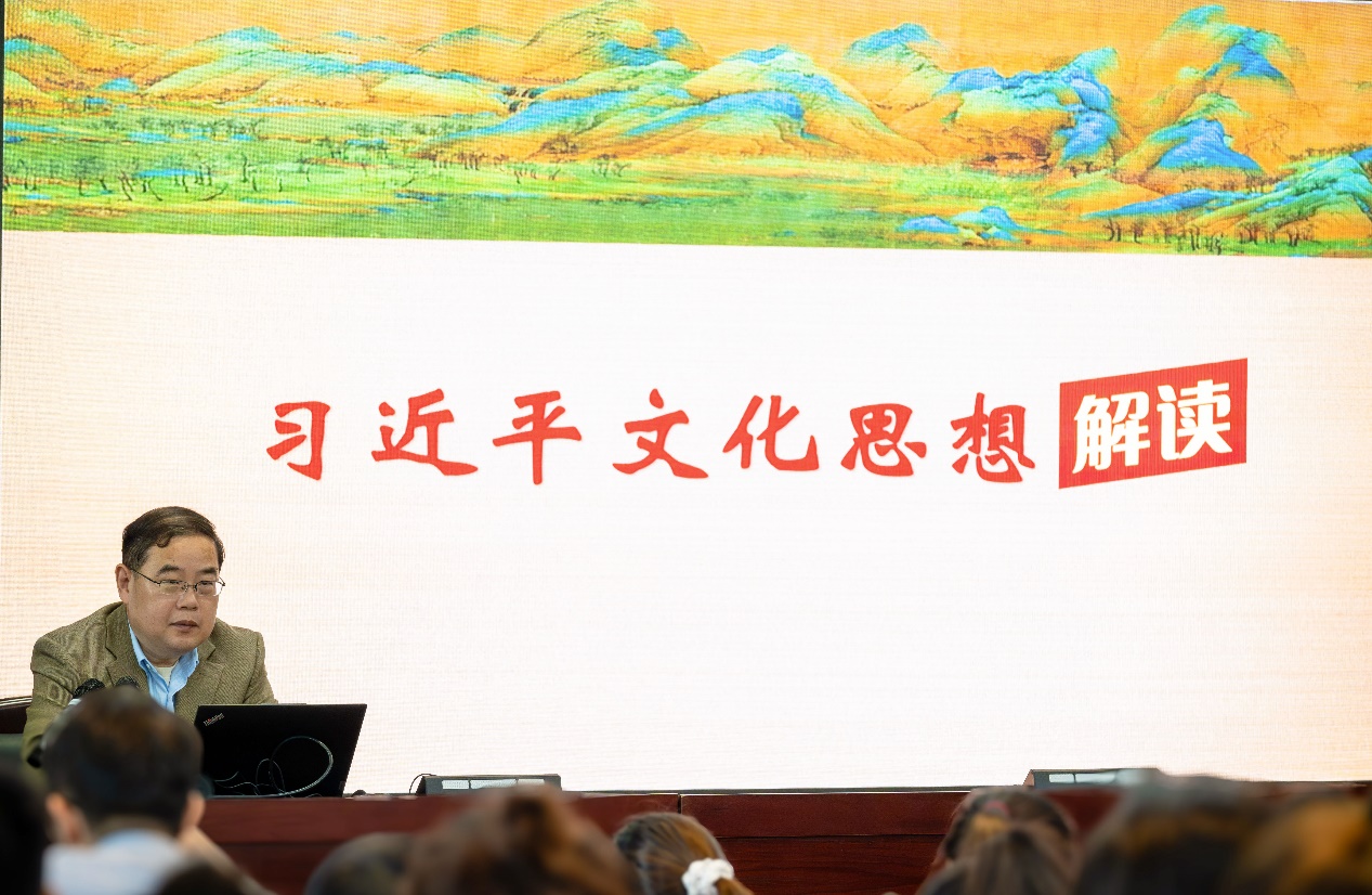 姜迎春教授围绕“科学理解文化和坚定文化自信是建设文化强国的重要前提”“坚持以马克思主义为指导,筑牢文化自信的学科基础” “高擎民族精神火炬:进行无愧于时代的文艺创造”“反对文化霸权主义,维护国家文化安全”“加强文化交流,引领世界文化”等方面展开讲述,深入阐释了习近平文化思想的理论内涵与重要意义,在党课讲授中结合社会实践、历史史料和人物传记,以深入浅出的语言阐述丰富而深刻的文化理论。