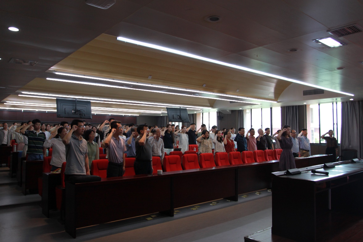 进入尾声,全体党员重温入党誓词,集体奏唱《国际歌》。愿信管学院全体毕业生党员乘风好去,长空万里,直下看山河。