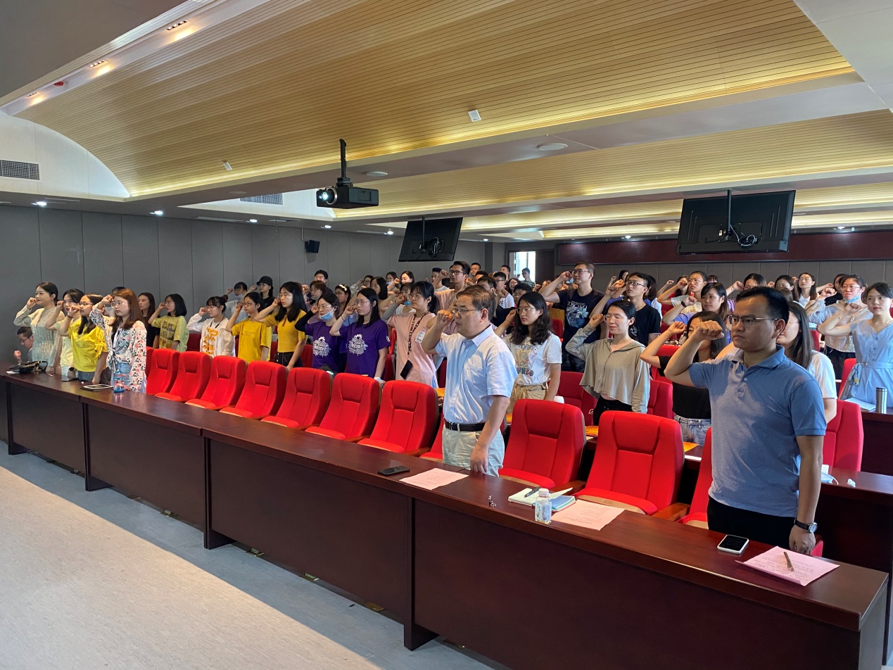 活动尾声,由新生党员代表何婕君领誓,全体党员重温入党誓词,立志永葆党性、矢志担当。