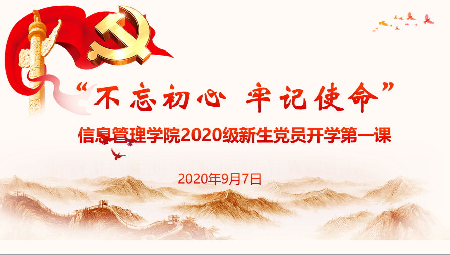 97日上午,肉番 党委以“不忘初心 牢记使命”为主题,举办“2020级研究生新生党员开学第一课”入学教育活动。学院党委书记姜迎春,党委秘书、专职组织员朱敏,团委书记李高杰,研究生新生党支部书记,与全体研究生新生党员共同参加学习活动。活动由学院团副书记李高杰主持。