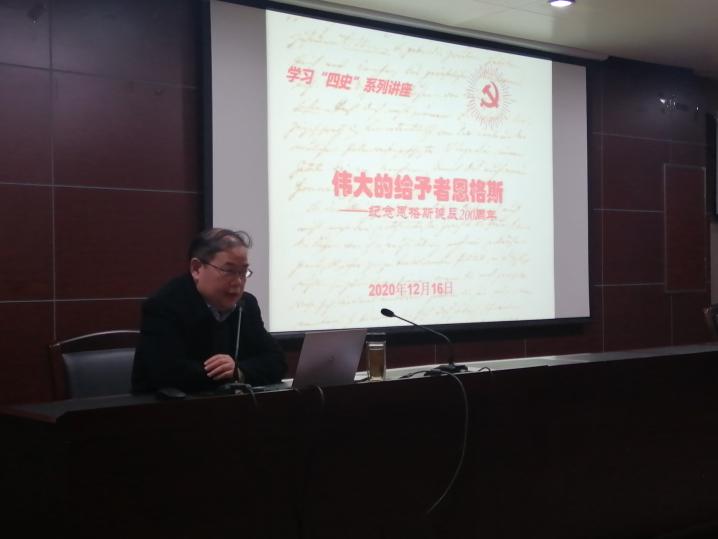 接着,姜迎春书记主讲党课《伟大的给予者恩格斯》。今年是恩格斯诞辰200周年,姜书记从恩格斯著作对马克思的影响、恩格斯对马克思的长期经济支持、恩格斯整理出版马克思的遗著等方面讲述了伟大的给予者恩格斯所做出的贡献。作为哲学专业教授和马列主义研究专家,姜书记积累了大量的第一手资料,基于恩格斯和马克思的来往书信娓娓而谈,尤其是结合各类有趣的案例,用一个个引人入胜的小故事生动地讲述了恩格斯与马克思之间的故事,引导同学们在轻松的氛围中更好地理解了马恩之间的友谊,认识到恩格斯的伟大贡献,也从新的角度加深了对社会主义建设史的学习和认识。