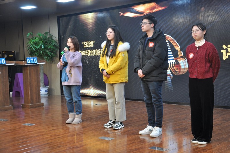在复活赛中,九名选手你追我赶,难分高下,比分一度非常接近,显示了同学们优秀的就业知识储备和信息检索技能。比赛进入加赛环节。最终,在抢答环节成功晋级的三名同学进入了第二轮个人赛环节。