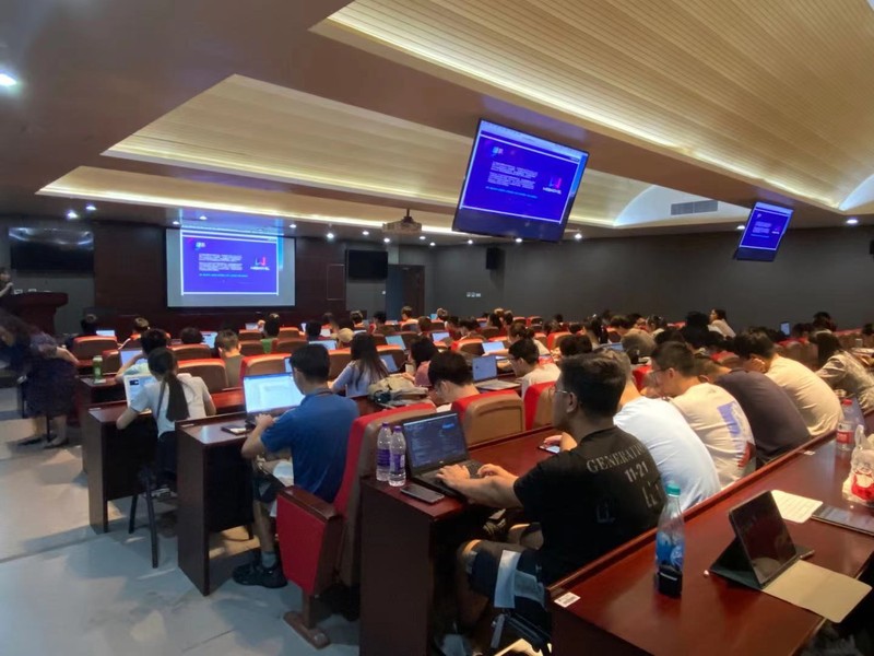 晚上,在学院A410报告厅,罗书记作讲座开场致辞,感谢三位嘉宾在下午的模拟面试中对参试同学们的指导。