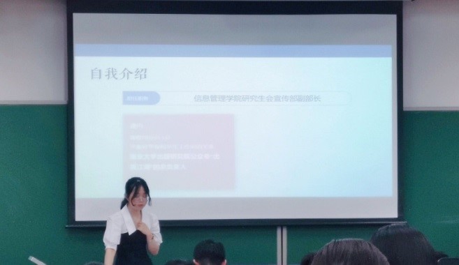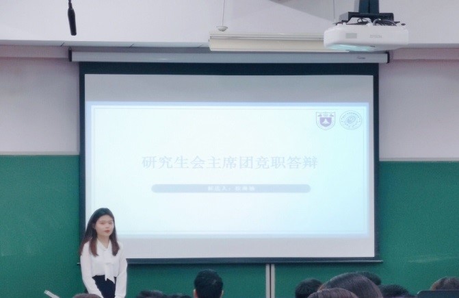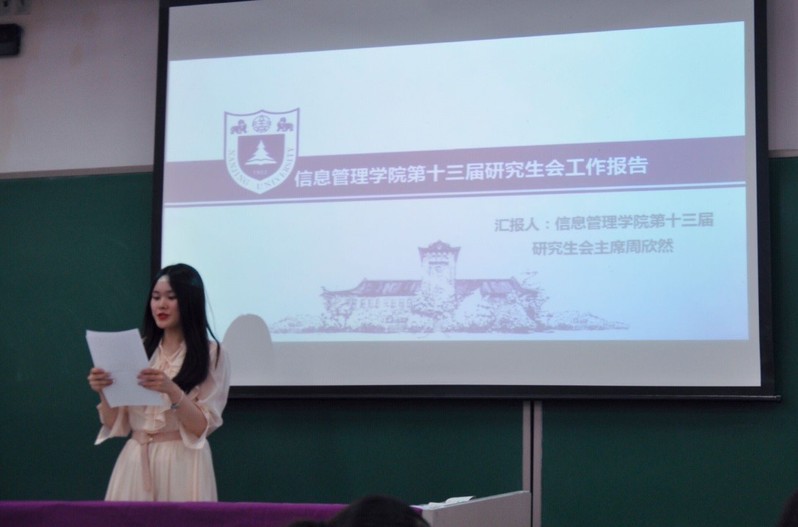 研究生会主席周欣然同学代表第十三届研究生会作工作报告。
