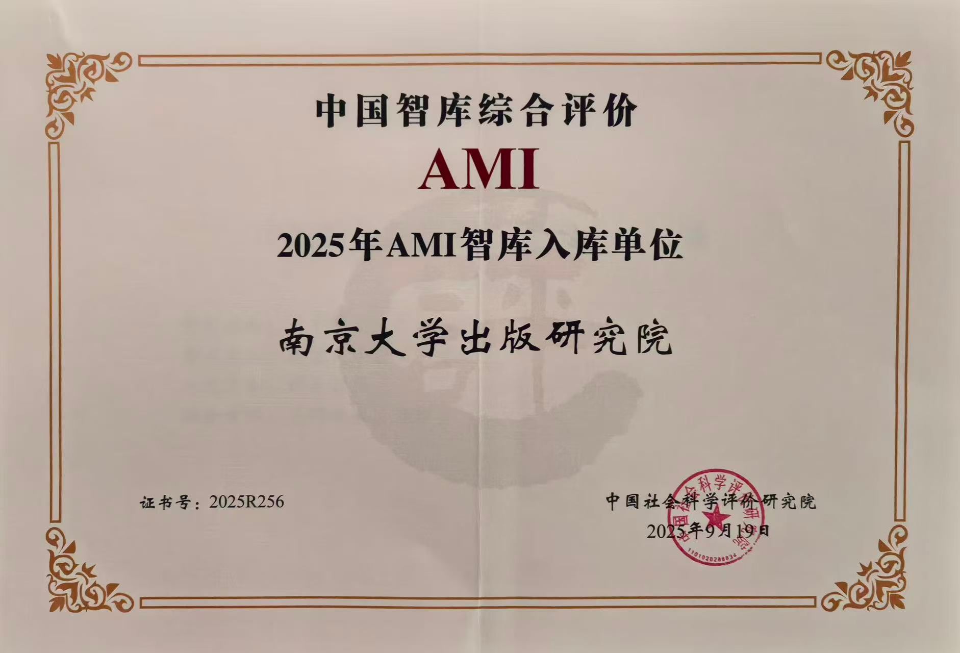 出版研究院入选“中国智库综合评价2025年AMI智库”名单,研究院案例“中国近现代出版研究资料汇编(50册)”荣获“中国特色新型智库建设十年回顾参考案例”。
