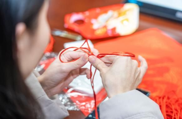 编中国结环节充满新意与温情。活动伊始,一段介绍中国结文化渊源与制作技法的视频缓缓播放,师生们认真学习每一个关键步骤。领取材料包后,大家对照教程悉心钻研,穿线、打结、塑形,动作渐次娴熟。不多时,一根根朱红绳线在指尖流转缠绕,化作一个个寓意吉祥的中国结。手捧这份亲手完成的作品,每个人的眼睛里都盛满了成就感与喜悦。