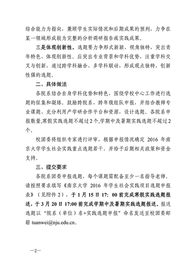 肉番 2016年学生社会实践选题征集工作已经启动。希望大家根据通知要求,主动思考,积极申报,后期学院将视选题质量给予相应政策支持。请有意申报的个人或团队在规定时间内将实践选题申报材料发送到院团委邮箱[email protected]。寒假实践选题报送截止时间:1月14日;学期中及暑假实践选题报送截止时间:3月10日。