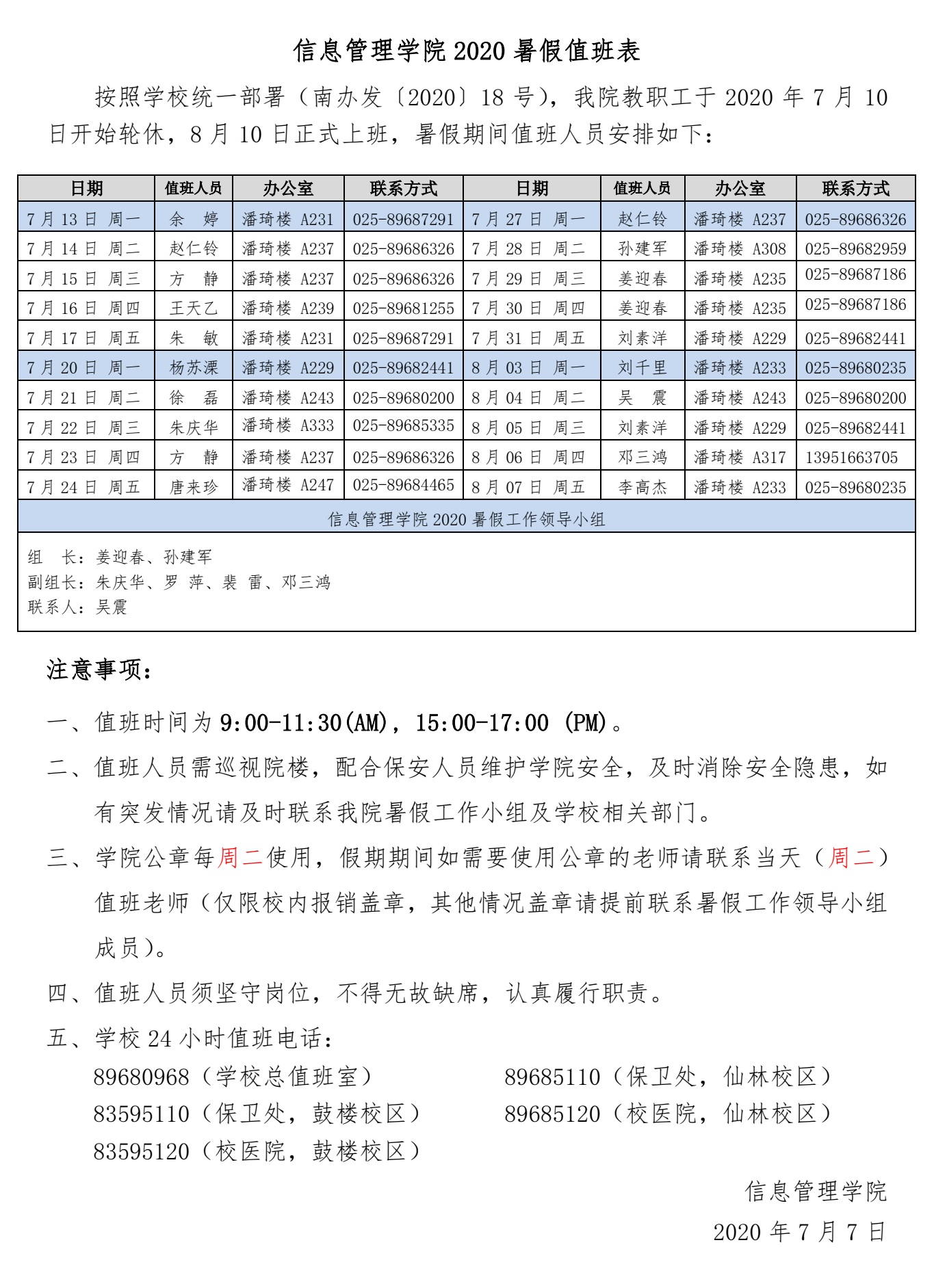 肉番 2020 年端午节值班计划