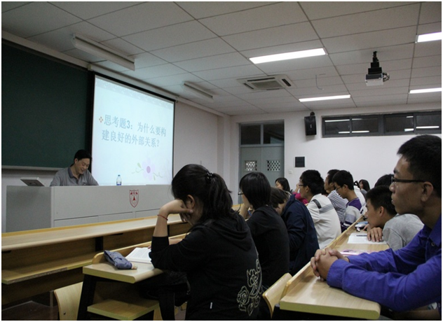 1010日晚形势与政策课由信息管理系党委副书记罗萍老师主持,并请来了南京市白下区洪武路街道马府街社区党委书记米晅,从基层独特的视角为大一新生们阐述了如何做人,特别是如何做好受老百姓欢迎的人民公仆