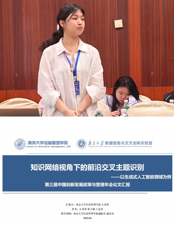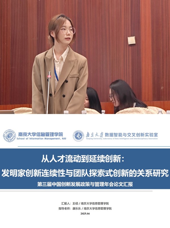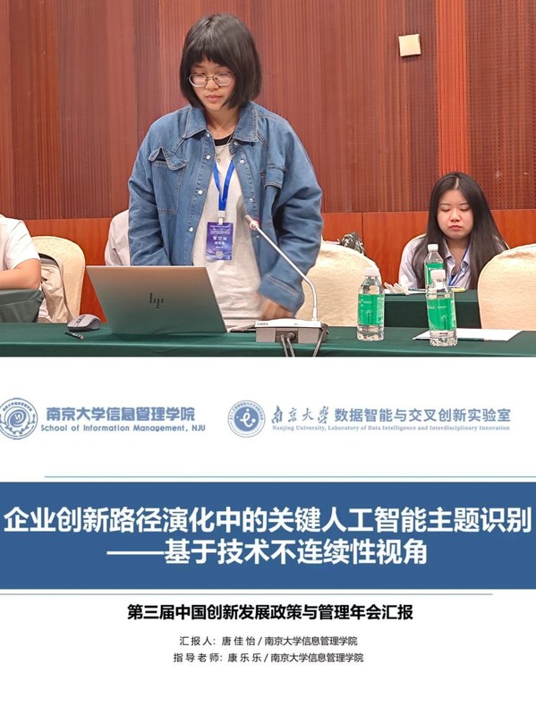 2022级本科生左英姿,王硕,唐佳怡的三篇论文被会议录用。三位同学分别在分论坛四“关键核心技术突破”作题为《知识网络视角下的前沿交叉主题识别研究--以生成式人工智能领域为例》、《从人才流动到延续创新:发明家创新连续性与团队探索式创新的关系研究》、《企业创新路径演化中的关键人工智能技术主题识别--基于技术不连续性视角》的论文汇报,获得了在场学者的高度关注,并围绕数智化创新、科技创新、技术机会识别等议题展开了热烈讨论。