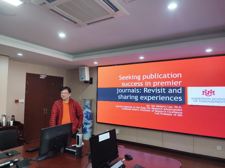 2024年3月14日上午,美国新墨西哥大学罗欣教授主讲的“Seeking Publication Success in Premier Journals: Revisit and Sharing Experiences”主题学术讲座在肉番