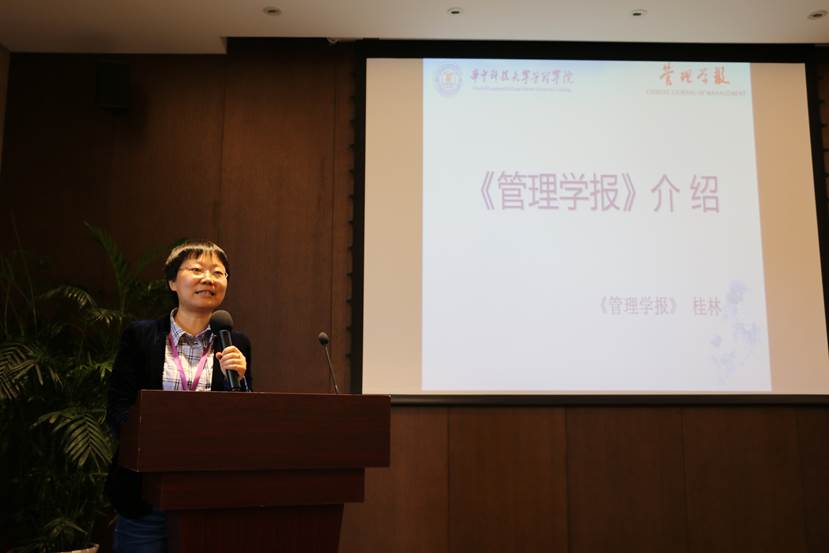 《管理学报》编辑桂林老师对《管理学报》期刊的办刊宗旨、主要成绩、收录稿件概况等做了简要介绍,接着讲解了本刊的栏目选题范围、对稿件的要求以及大家都很关心的审稿流程等相关内容。
