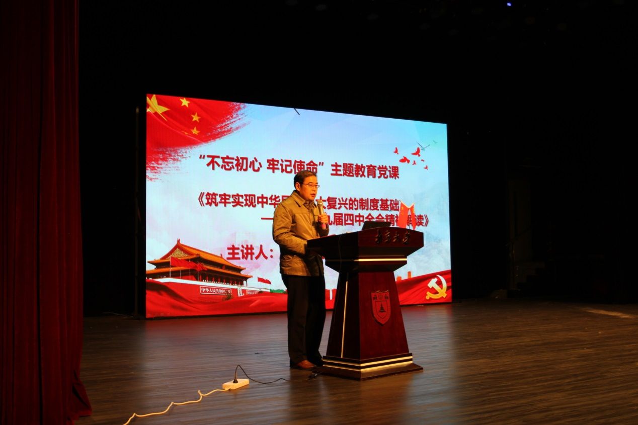 党委在张心瑜剧场召开全体党员大会,由学院党委书记姜迎春同志和副书记、院长孙建军同志分别上党课。