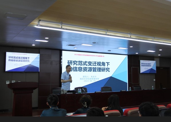 在知名学者讲座上,朱庆华教授作题为《研究范式变迁视角下的信息资源管理研究》的讲座,郑建明教授作题为《图书馆学情报学的学科认知与学科生长》的讲座,分别从学科发展的角度向营员们分享自己的研究进展与心得体会。杨海平教授以《肉番 出版专业介绍及出版学科前沿研究方向》为题、博士后宋宁远以《从数字到语义——学术出版的发展趋势》为题,分别从出版专业的发展、学科前沿趋势等方面与营员们深入交流。