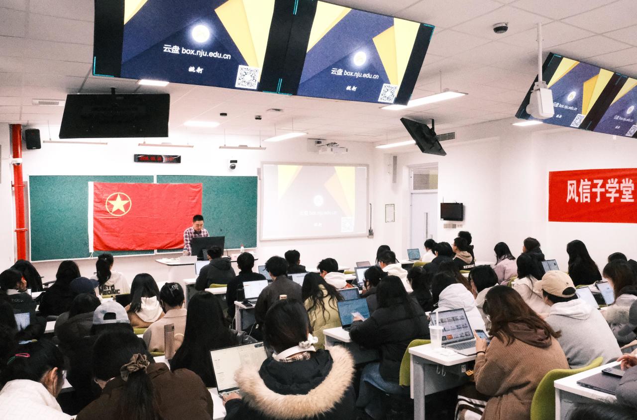 信息化建设管理服务中心副主任姚舸老师围绕南大云盘(NJU BOX)与南大表格(NJU Table)两大工具展开讲解,旨在提升同学们的实践技能,优化团学工作的执行效率。